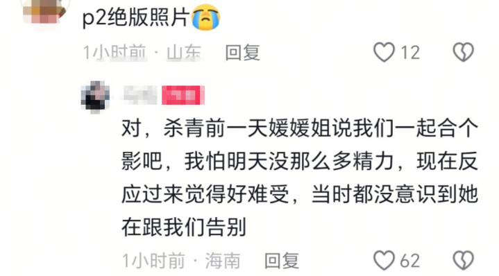在1月28日,有该剧的工作人员晒出和主演的合影尤其是和朱媛媛的那一张,真是一点看不出来生病的样子,笑容也很好看,红光满面的,但身体非常消瘦,工作人员还提到了朱媛媛当时的状态,因为朱媛媛深知自己的身体抱恙,所以和大家说拍合影,怕明天就没这个精力拍了。